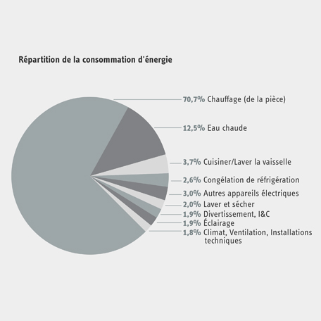Plus des 2/3 du besoin total en énergie d'un foyer sont utilisés pour le chauffage. Pour pouvoir économiser de l'énergie, il faut réduire les coûts de chauffage.